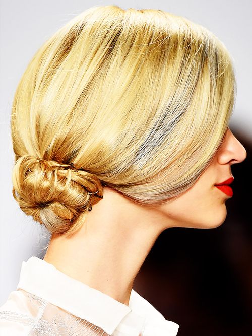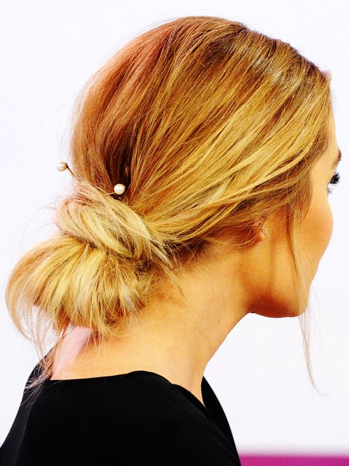 El moño-bajo a un lado con el pelo caído, es la summun de la elegancia. Es demasiado clásico, así que para conseguir un look fresco, combínalo con ropa más casual.