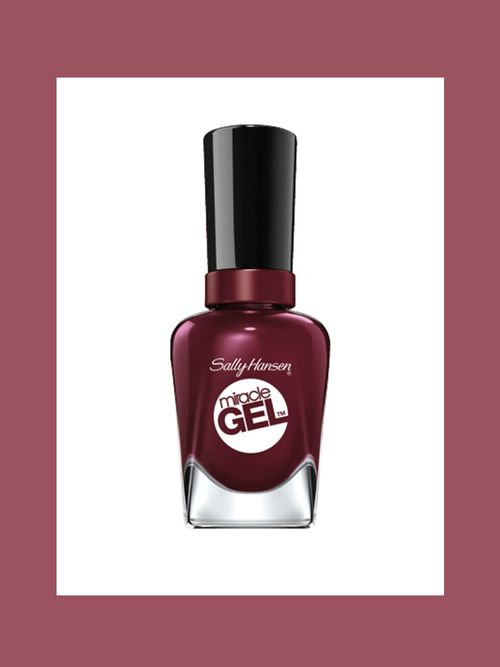 Uñas en base color vino y detalles en superficie dorados. En el dedo anular, relieve de 4 clavos dorados.