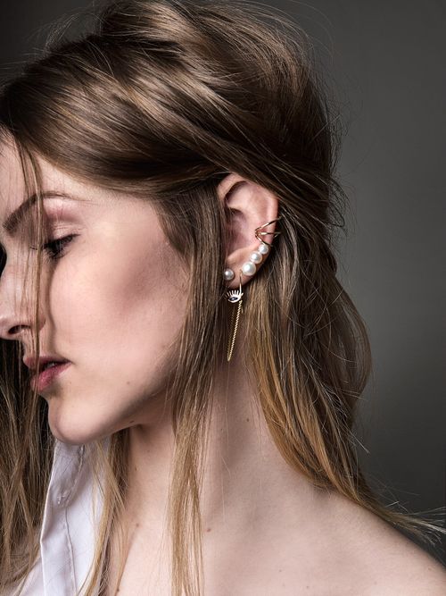 -Pendiente "Mal de ojo" en plata esterlina 925. Oro 18K y bañado en oro rosa con detalle piedra zirconia y perla de agua dulce. 60€ aprox.