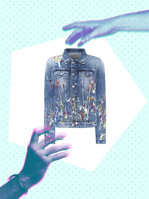 Mujer Chaqueta Denim Con Mancha De Pintura Artist Blue Xs,l,m,s,xl