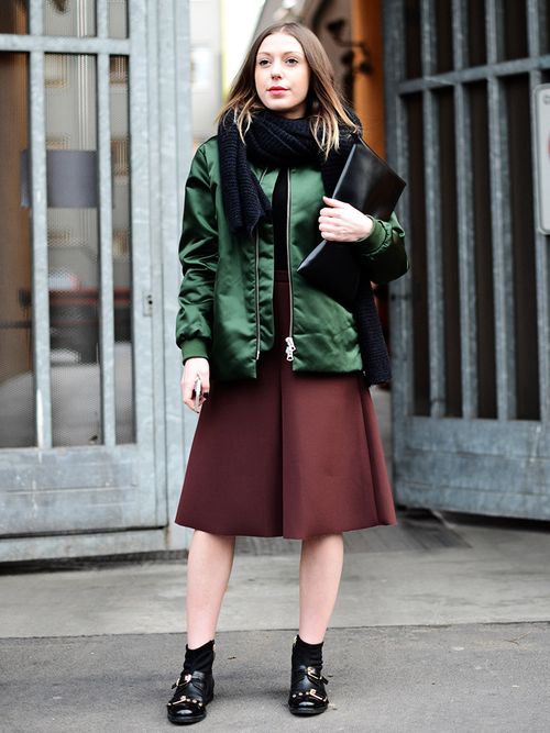 Las it-girls como Chiara Capitani enrollan las mangas de la chaqueta bomber, y el resultado no puede ser más fabuloso, sobre todo combinado con un conjunto, en general, elegante.