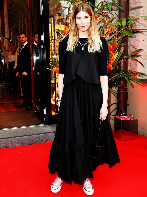Incluso unas Converse en rojo rosado son bienvenidas con los looks en negro. Solo tienes que echar un vistazo al atuendo de Veronika Heilbrunner en la Store Opening Party de Salvatore Ferragamo a mediados de abril en Berlín.