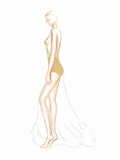 Este es el Vestido por excelencia: escote side boob, detalles de flores en pedrería y grandes flores en el bajo del vestido. Una obra de Gucci.