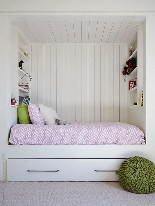 Como cada centímetro cuenta y la decoración minimalista es la máxima de una habitación acogedora, este truco es uno de los más importantes. Por estanterías o armarios de esquina. Aunque de la sensación de que se reduce el espacio, en realidad estarás aprovechando una posible “zona muerta”. Es perfecto para poner las cosas que más utilizas o pequeños (y que no sabes donde poner) como maquillaje, perfume, bisutería y accesorios, zapatos, gorros, bolsos…